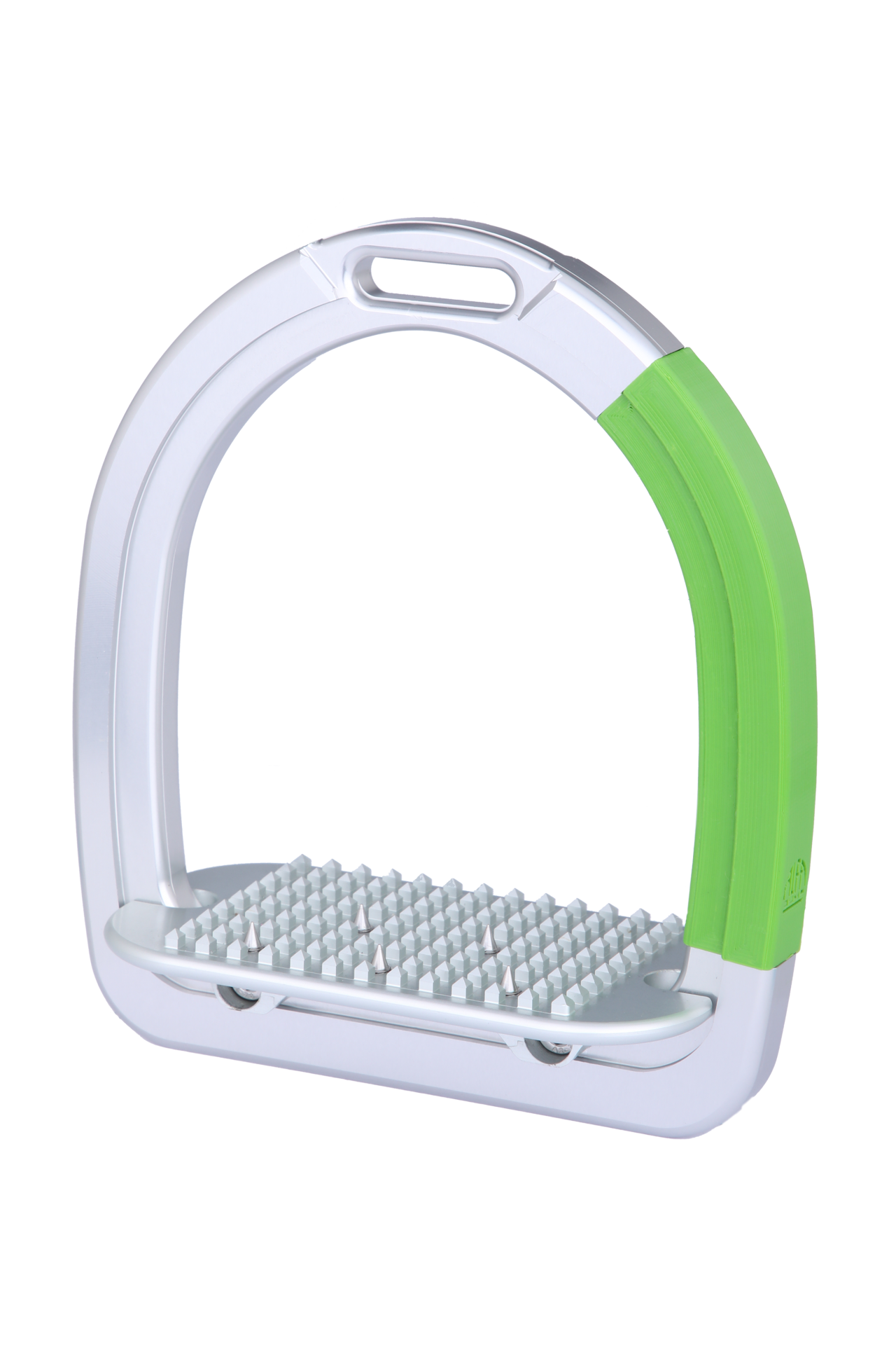 The safety stirrup is completely machined from a high-strength aerospace aluminium alloy.